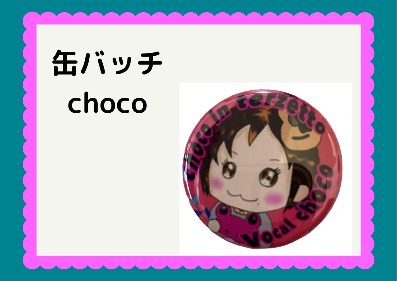 ちょこてるグッズ第一弾はボーカルchocoデザインのメンバー缶バッチ♪
