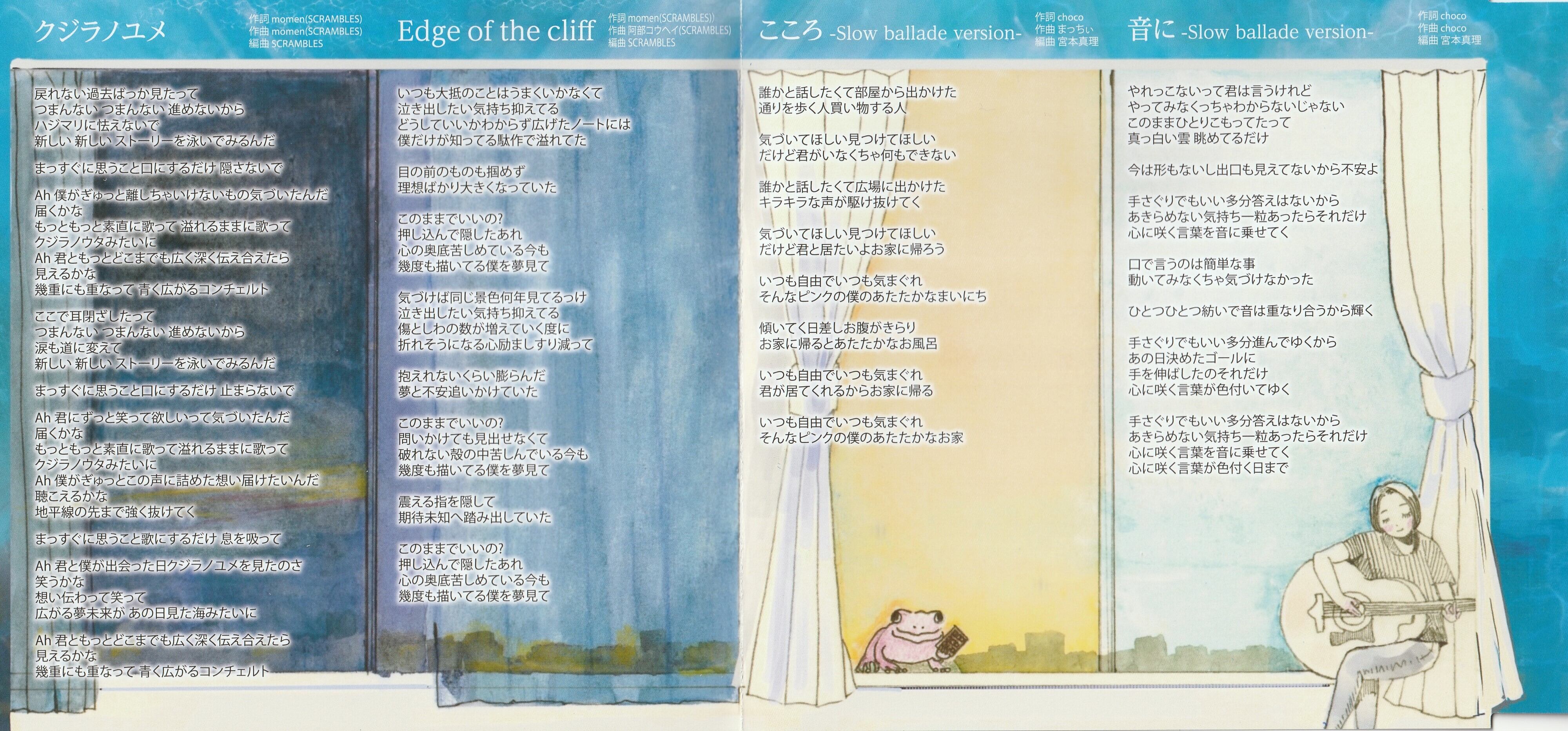 CDにはSCRAMBLES作曲の「クジラノユメ」「Edge of the cliff」の他